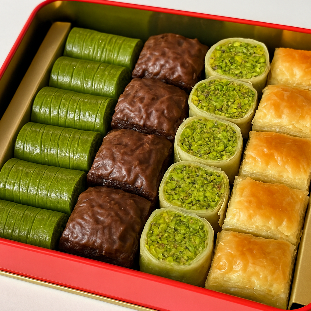 A legacy of flavor since 1864 – This exquisite assorted baklava box by Hafiz Mustafa blends heritage and mastery with four premium varieties: